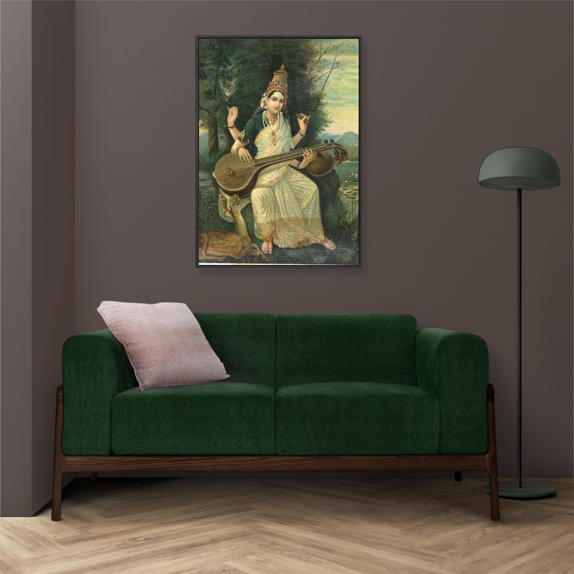 Evoke inspiration and wisdom with 'Goddess Saraswati' by Raja Ravi Varma. This timeless masterpiece captures the divine essence of the Hindu goddess of knowledge, music, arts, and wisdom. Adorn your space with this exquisite portrayal, as Saraswati's serene presence fills your surroundings with creativity and enlightenment. Raja Ravi Varma's meticulous attention to detail and vibrant colors breathe life into this iconic artwork, inviting you to immerse yourself in its cultural significance and spiritual depth. Embrace the divine grace of Saraswati and infuse your home or office with a touch of divine elegance and intellectual prowess.