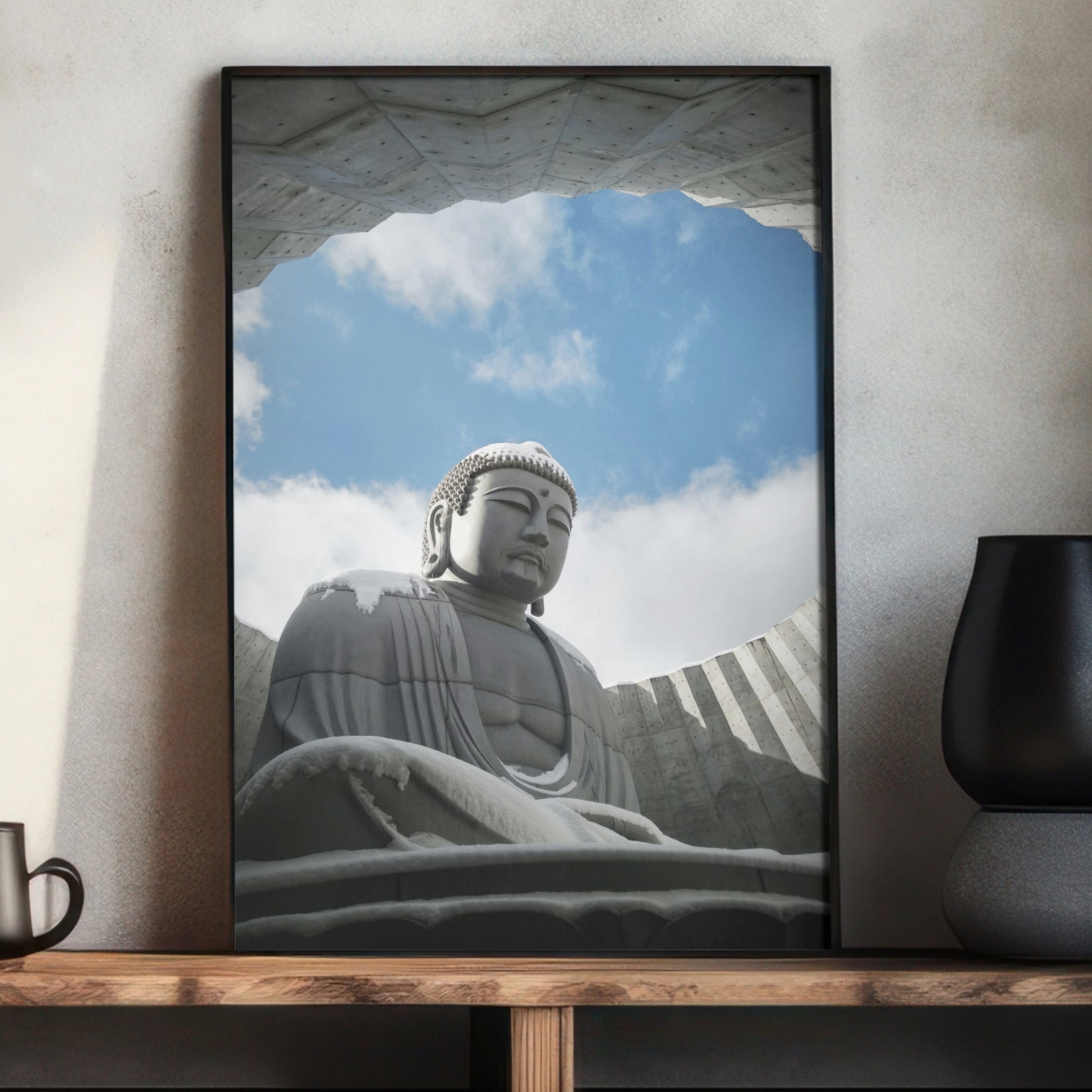 A Thoughtful Gift for Architecture and Spirituality Enthusiasts: This photograph is an ideal gift for those who appreciate architectural brilliance, Buddhist culture, and minimalist design. Perfect for art collectors, architecture aficionados, or anyone who values serenity and mindfulness, the image serves as a unique and meaningful present. Keywords: architecture gift, Buddhist art gift, Tadao Ando gift, spiritual wall art.