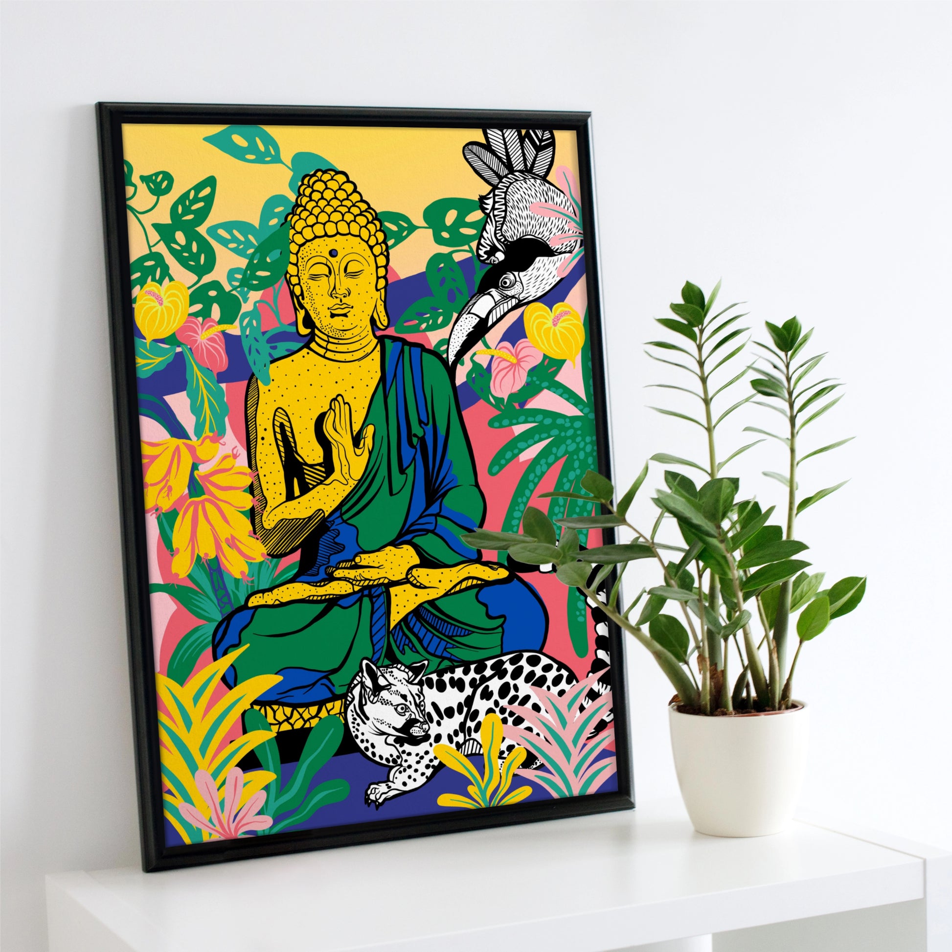 Order Your Framed Print of India Jungle Buddha Meditation Today: Transform your space with the tranquil and artistic power of this captivating painting. Keywords to remember: Buddha artwork, spiritual painting, nature-inspired print, serene decor, and meditative art.