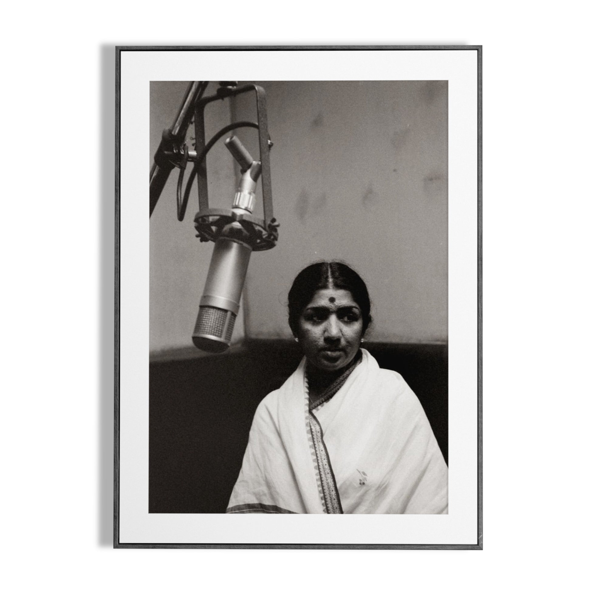 - Framed print of a vintage Lata Mangeshkar studio photograph