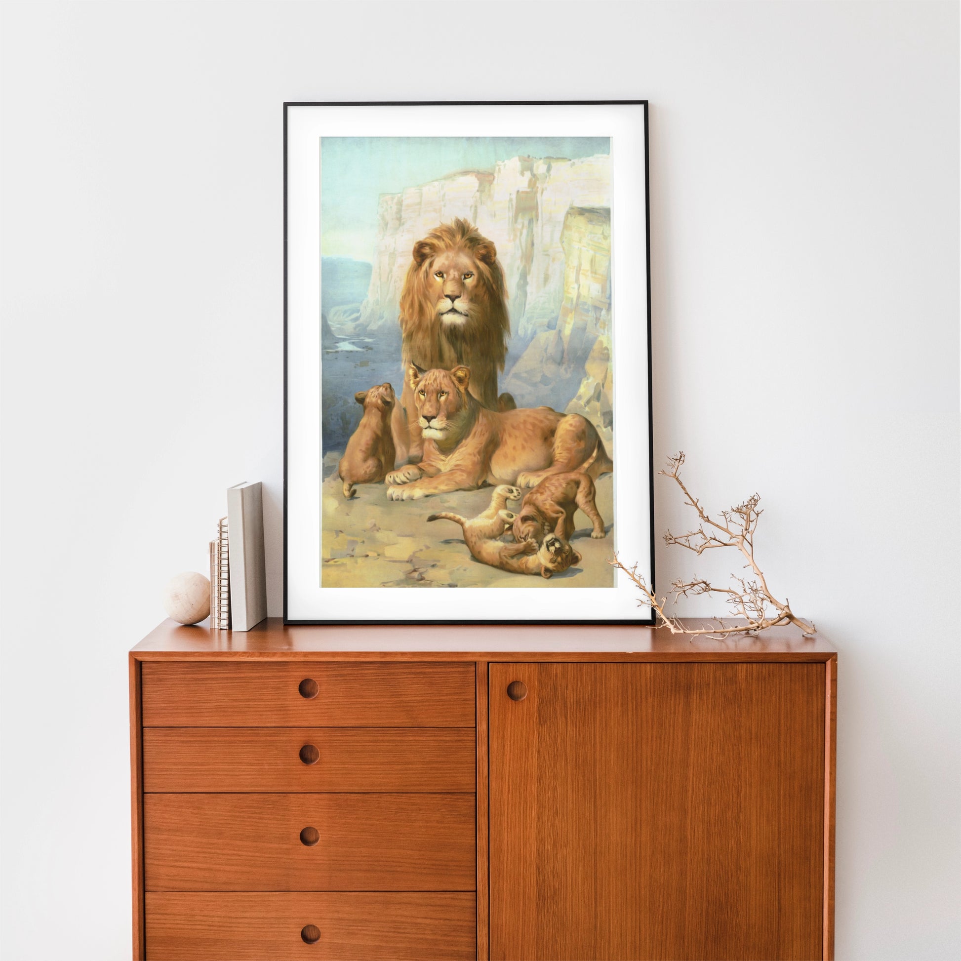 Gift of Wild Majesty: Share the beauty of lions in their natural habitat with friends and family. This chromolithograph makes a thoughtful gift for wildlife enthusiasts and art lovers alike.