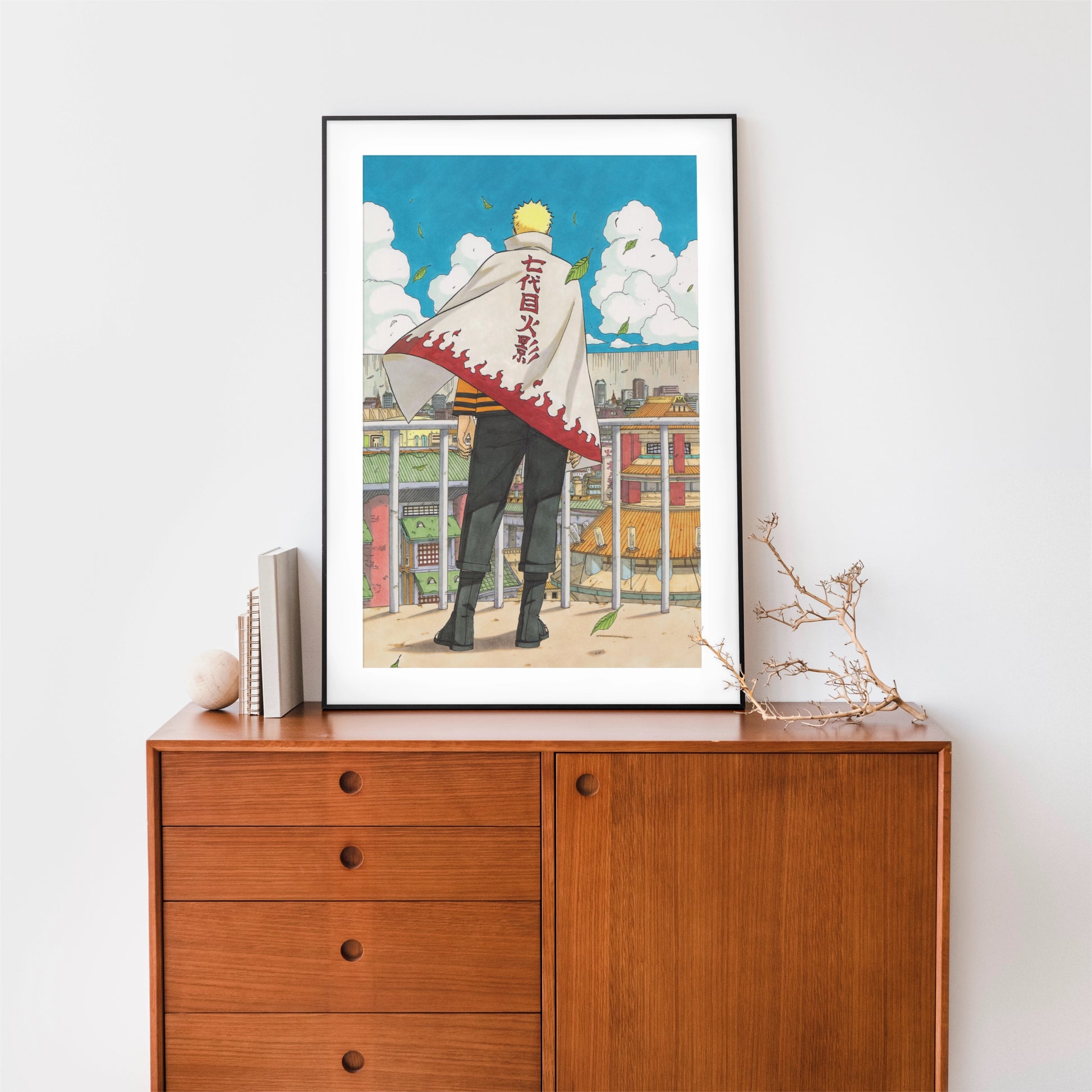 Behold the Majestic Hokage: Naruto, Guardian of Konoha" - This stunning painting captures the revered Hokage Naruto, standing tall with unwavering determination as he gazes upon the bustling village of Konoha. With vibrant hues and intricate details, the artwork exudes a sense of power and leadership, embodying Naruto's role as the protector of his beloved village. From his iconic attire to the serene expression on his face, every aspect is masterfully depicted, drawing viewers into the world of Naruto's legacy. Elevate your space with this captivating piece, celebrating the indomitable spirit of Naruto and the enduring strength of Konoha.