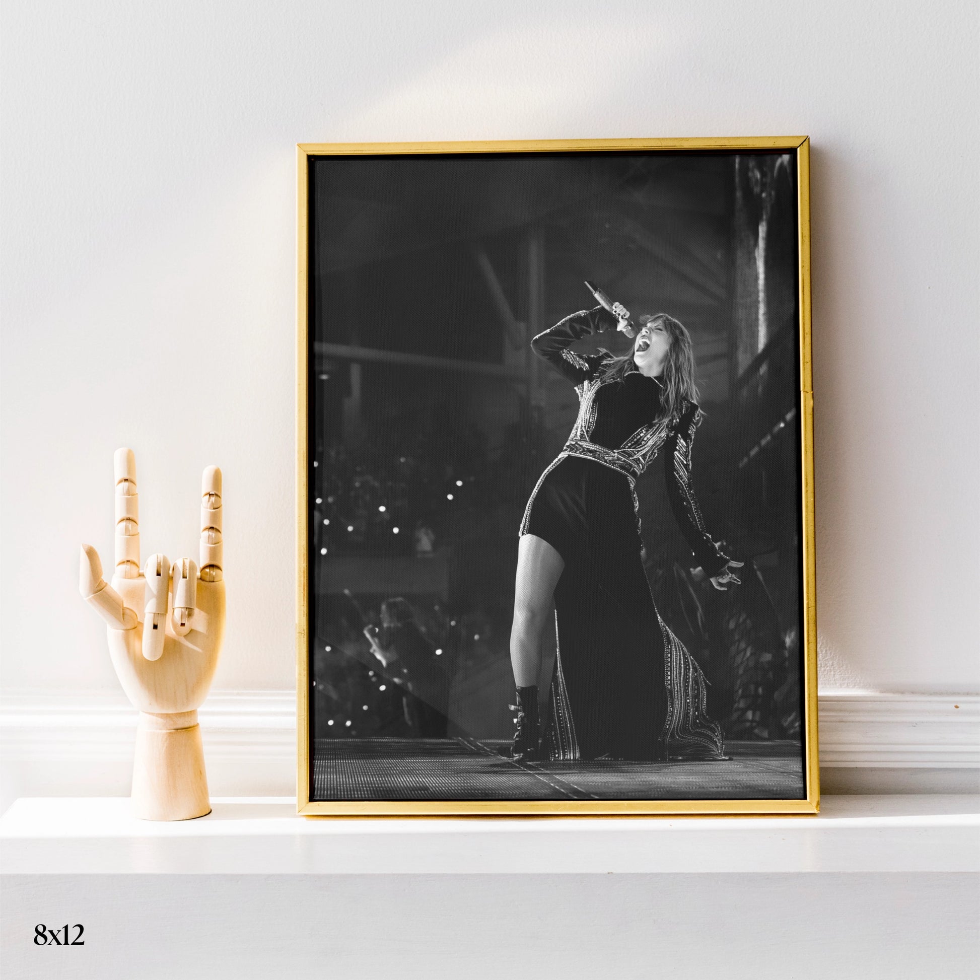 Experience the raw energy and timeless elegance of Taylor Swift on stage with this black-and-white performance poster. Captured in the middle of a powerful song, Taylor’s focus and intensity shine through, making this poster a must-have for any fan or collector. The monochromatic finish emphasizes her grace and stage presence, creating a piece that’s both stylish and dramatic. Available on matte paper or canvas, it’s the perfect addition to music rooms, bedrooms, or gallery walls.
