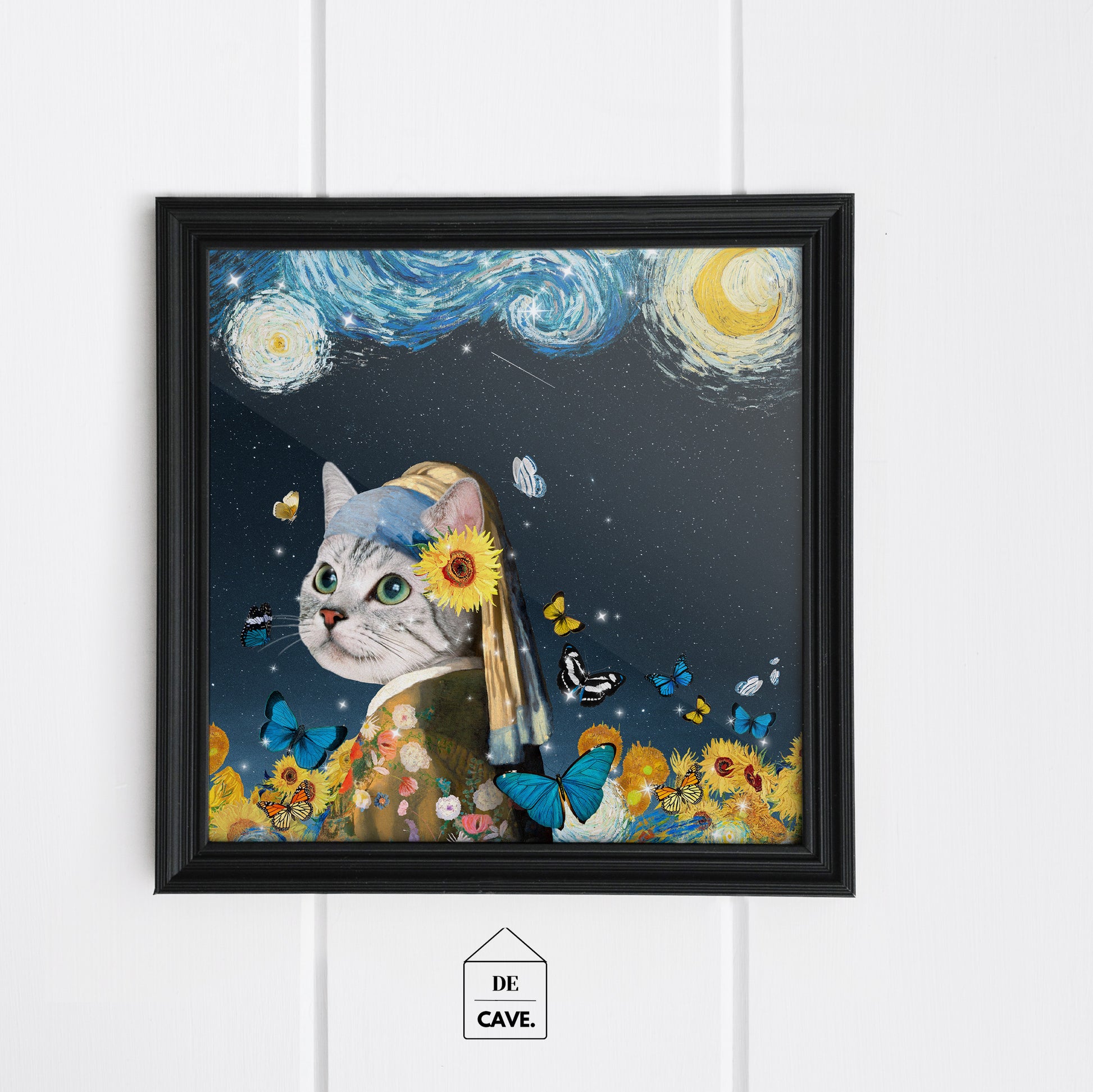 White Whiskers: A Feline Tribute Inspired by Vincent van Gogh. Immerse yourself in the swirling colors and dynamic brushstrokes of this captivating masterpiece, capturing the essence of van Gogh's timeless spirit. Let the vibrant hues and emotive textures transport you to a world where imagination knows no bounds. With 'White Whiskers,' experience the artistic brilliance inspired by the legendary artist himself, as a white cat takes center stage amid a backdrop of vivid hues. Adorn your space with this mesmerizing artwork and invite the timeless spirit of van Gogh and the charm of a white cat into your home. Discover the magic of 'White Whiskers' and elevate your décor with a touch of artistic wonder.